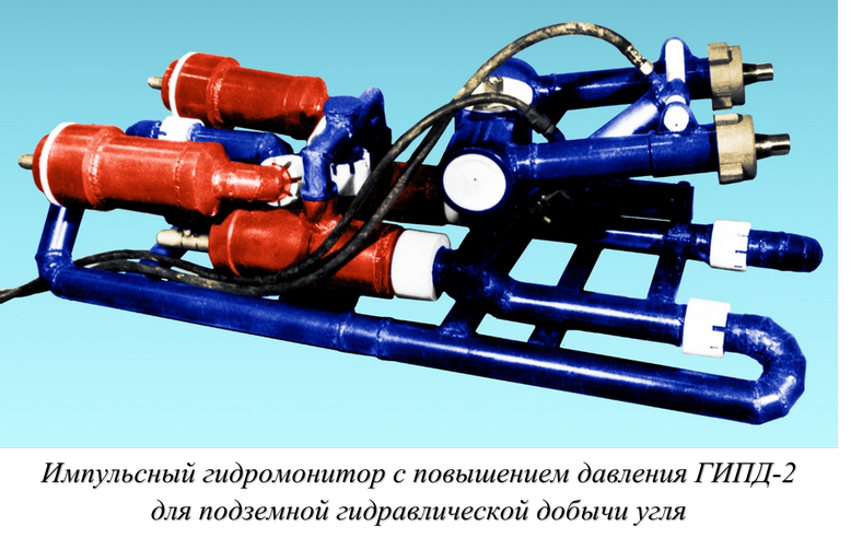 Гидроимпульсные установки, в основе принципа работы которых лежит использование гидроудара, нашли применение не только на очистных работах на пологих и наклонных пластах гидрошахт и шахт обычной технологии, но и для ведения нарезных работ (цикл исследований проводил Зима П.Ф.).
