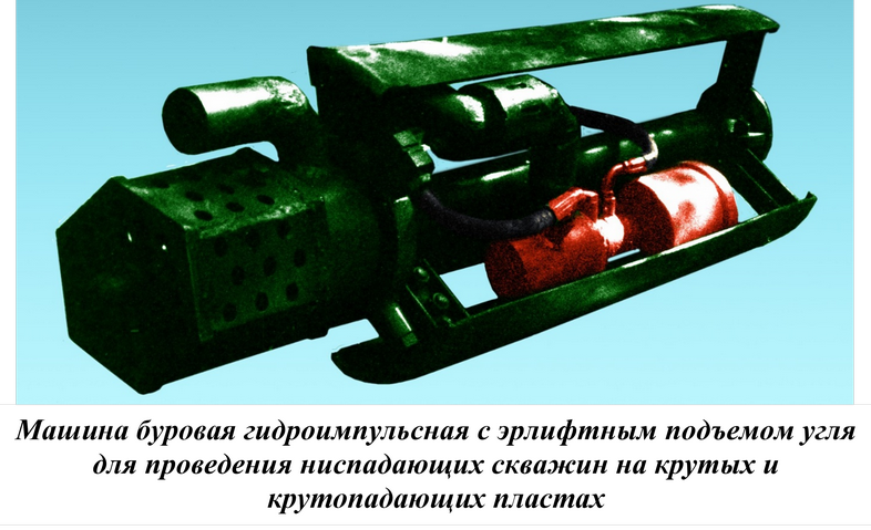 Дальнейшее развитие идея разрушения угольного массива импульсной струей воды без повышения давления в импульсе получила в создании и исследовании установок, обеспечивающих безлюдную выемку угля на маломощных крутопадающих пластах -проведение восстающих скважин и ниспадающие скважины с эрлифтным подъемом отбитого угля. Созданные образцы установок предназначены для ведения нарезных и очистных работ (установка ГИУВм) даже в условиях выбросоопасных пластов и позволяют получать влажность отбитого угля не более 10 %. В работах по данному направлению принимали участие с.н.с., к.т.н. Коломиец В.С., доц., к.т.н. Зима П.Ф., доц., к.т.н. Моргунов В.М., ст. преп. Гулин В.В.